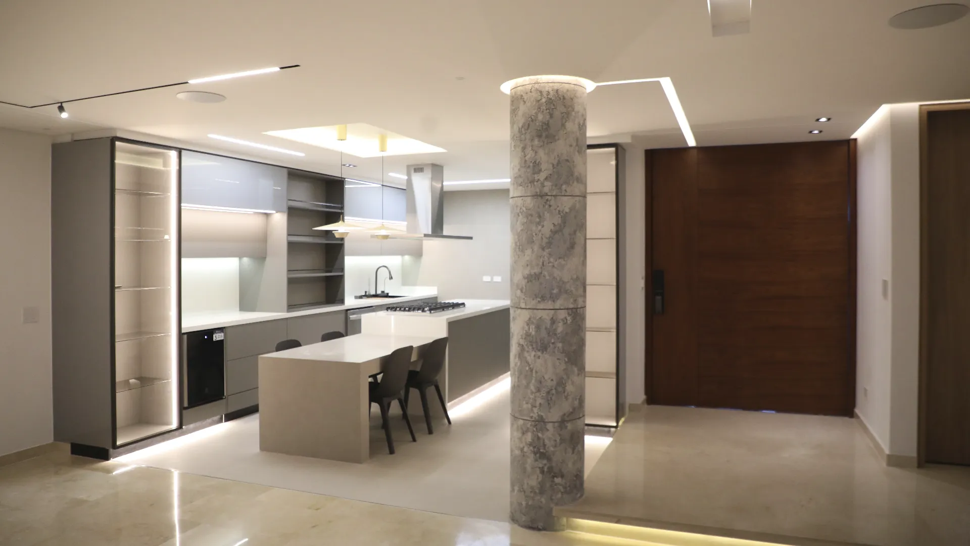 Este nuevo proyecto en Pance, Cali, se enfoca en el diseño de iluminación inteligente, elevando el confort visual y la eficiencia energética. La automatización residencial con Lutron gestiona cada fuente de luz.