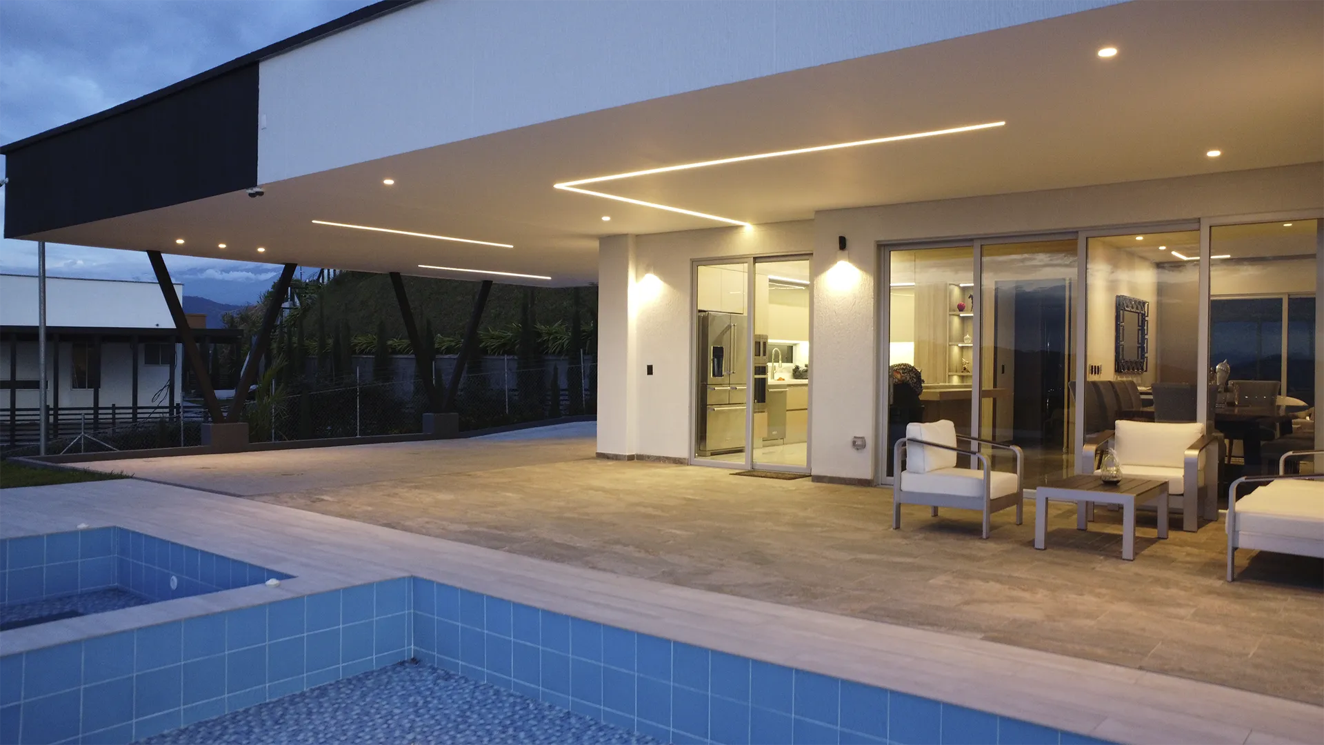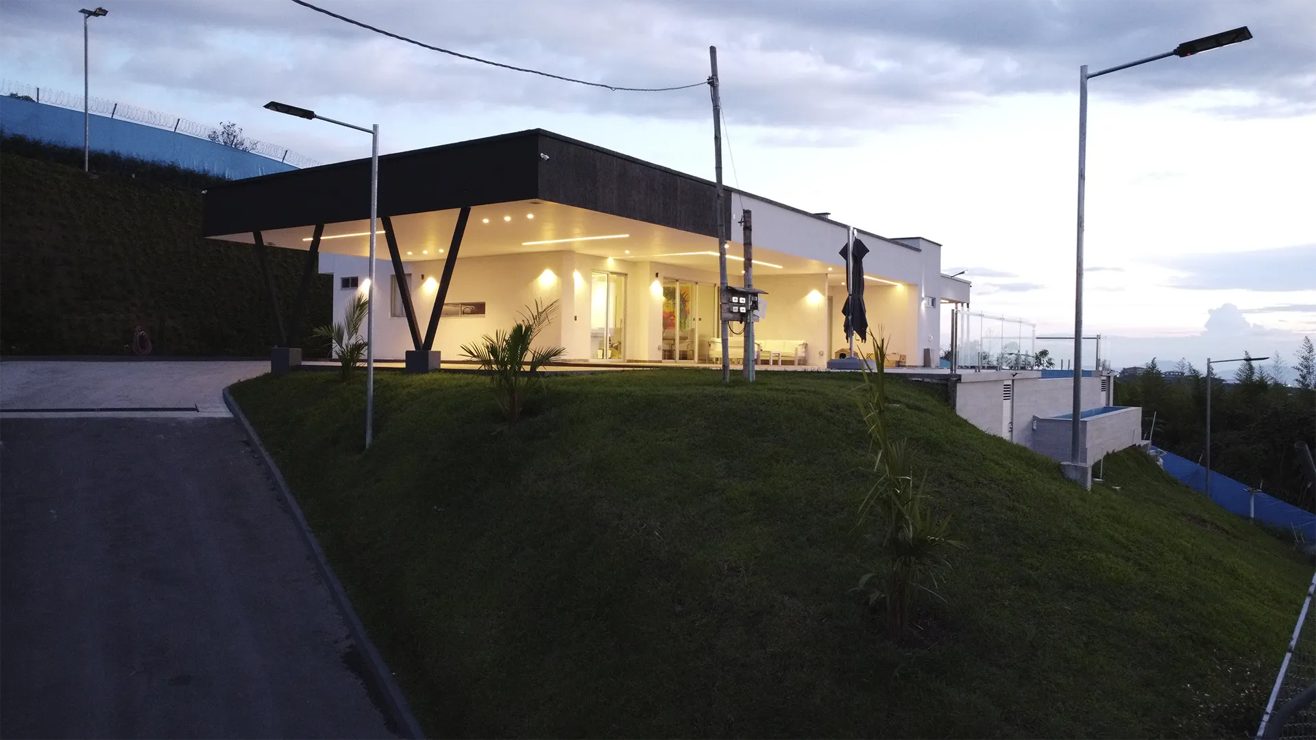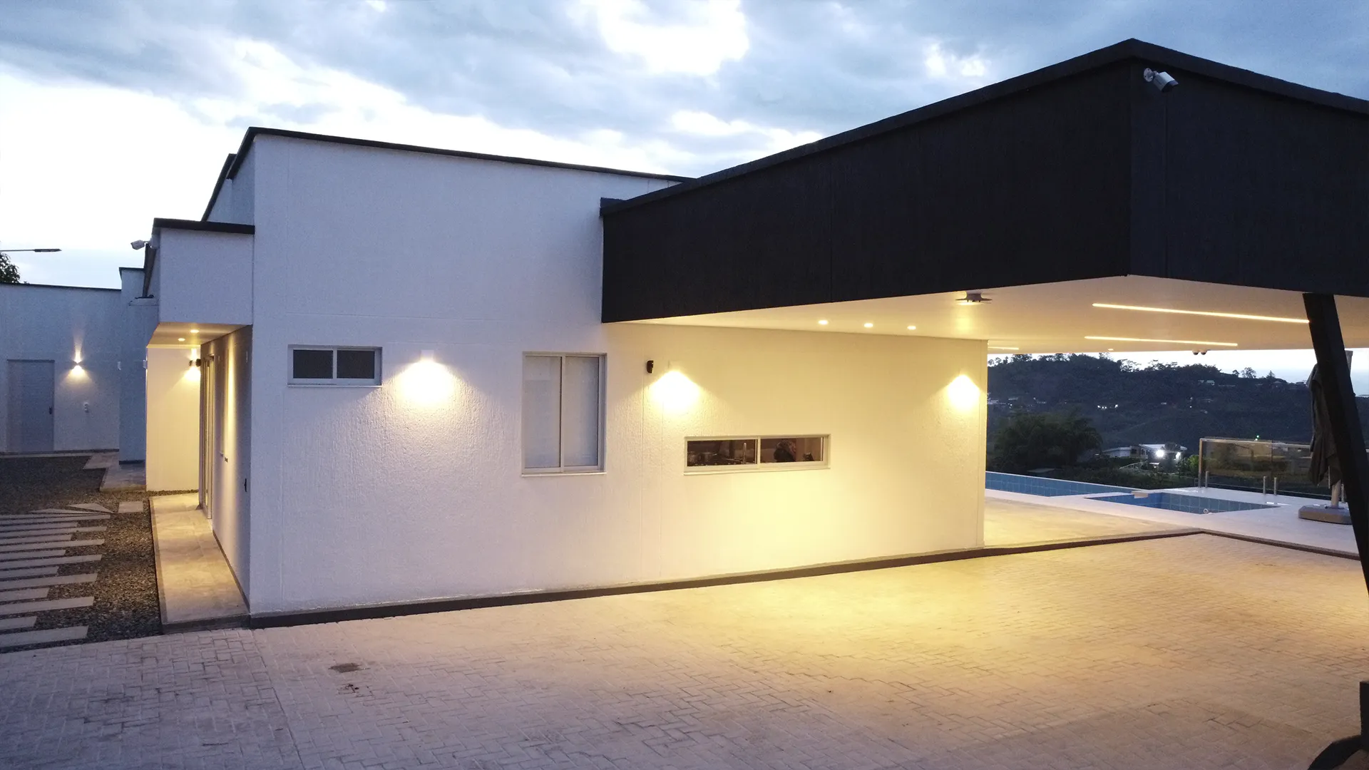 Logramos un impacto visual impresionante y elegante que subraya las líneas de la propiedad. La luz crea una atmósfera única y sofisticada, elevando el valor y la presencia de la residencia.