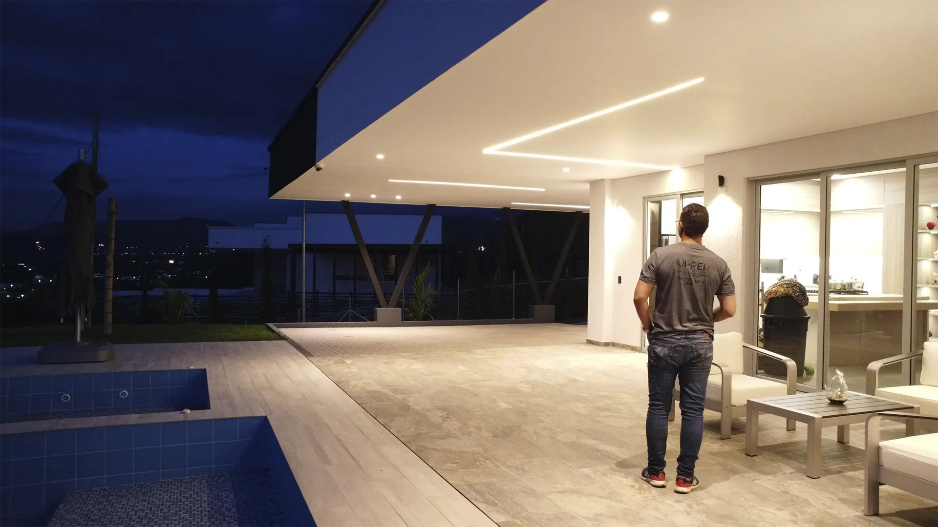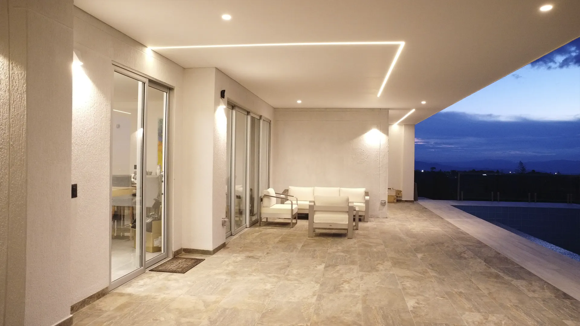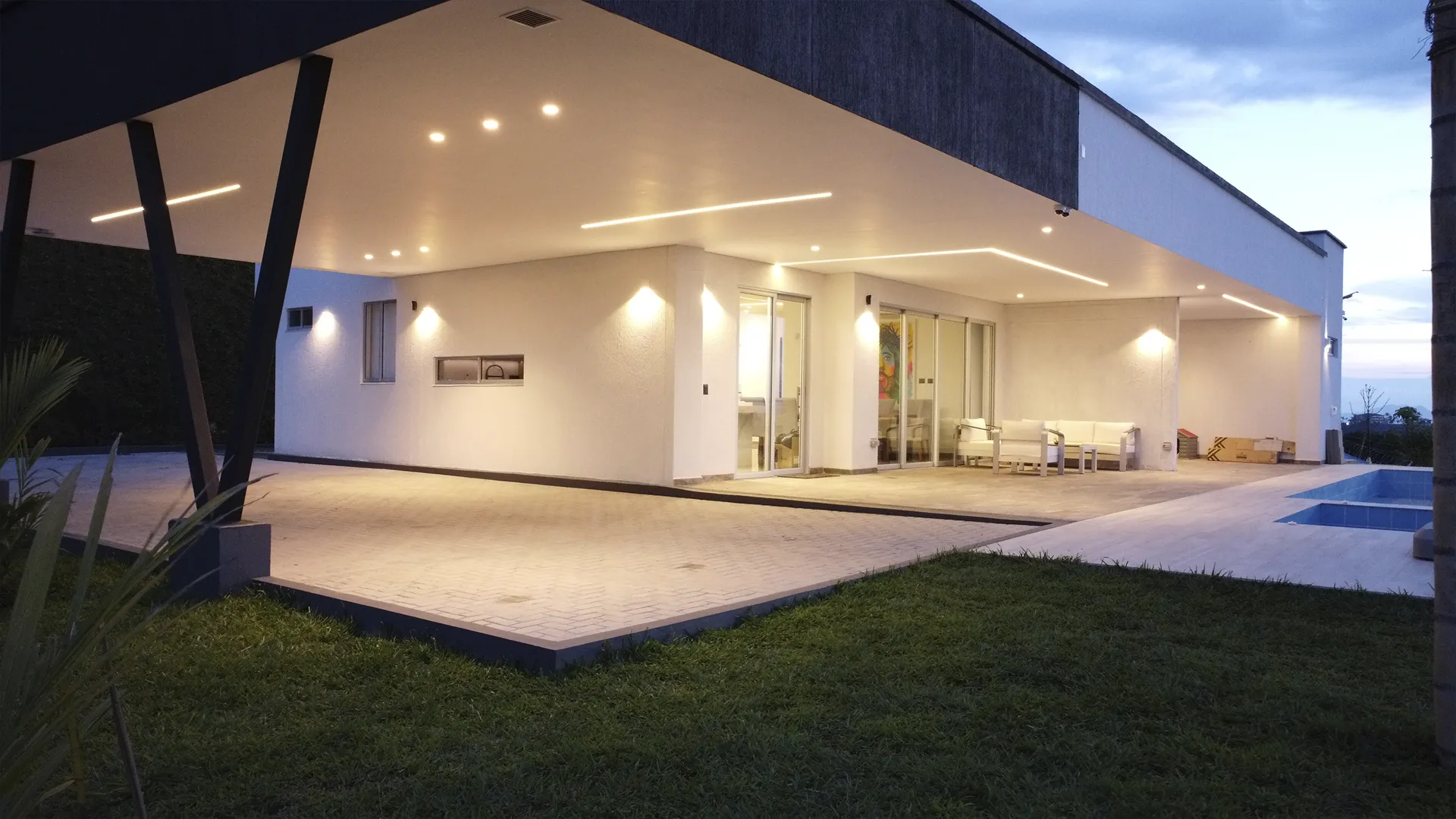 Logramos un impacto visual impresionante y elegante que subraya las líneas de la propiedad. La luz crea una atmósfera única y sofisticada, elevando el valor y la presencia de la residencia.