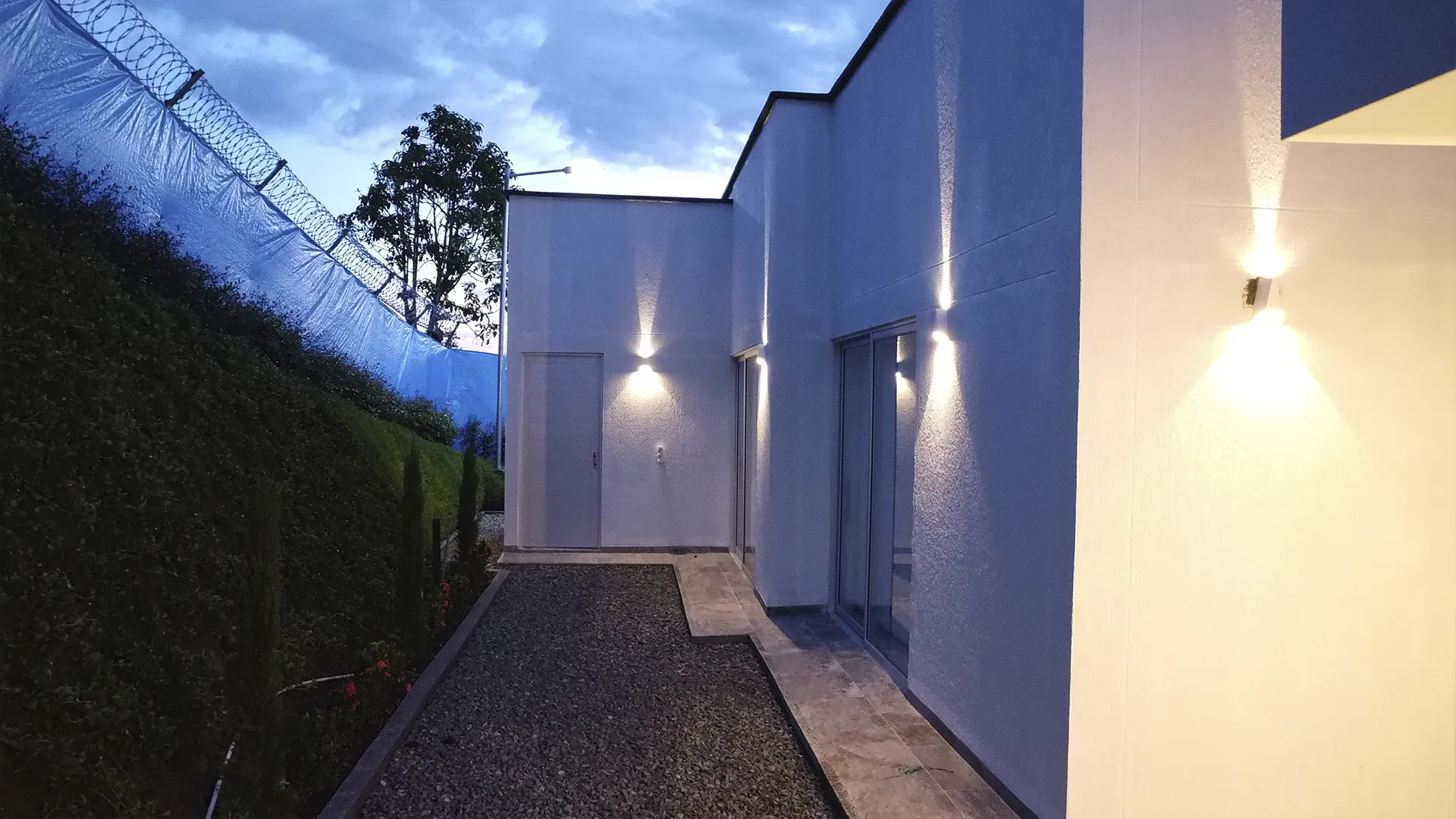 En Pereira, transformamos esta residencia con un diseño de iluminación exterior que enfatiza la arquitectura y la seguridad. El proyecto realza la belleza de la fachada durante la noche, utilizando técnicas especializadas.